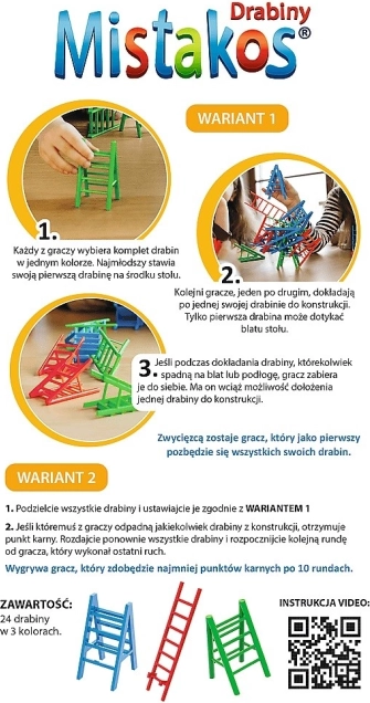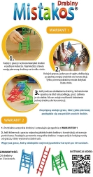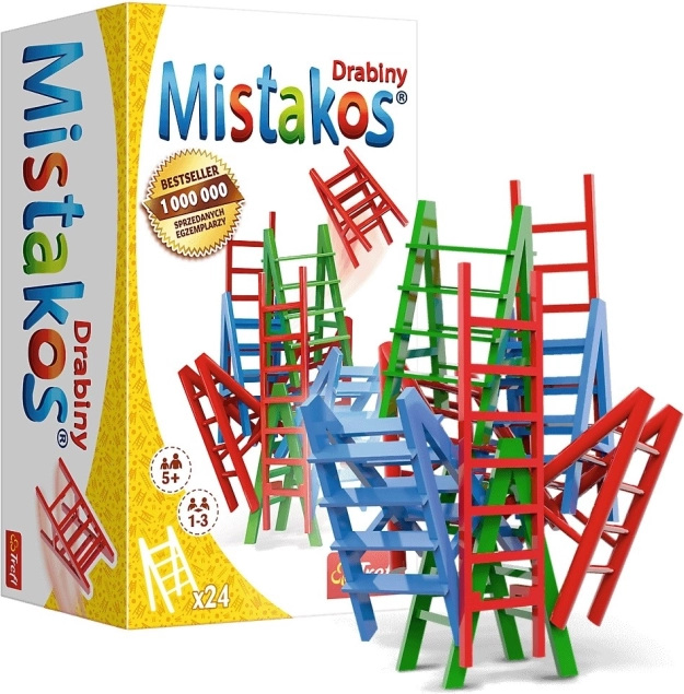 Îndrăgitul joc de îndemânare Mistakos revine într-o variantă originală cu scări. Scopul este să așezi inteligent propriile scări pe construcția în creștere astfel încât să nu se prăbușească – reguli simple, runde rapide și multă voie bună la aceeași masă.