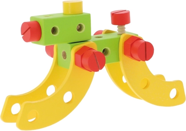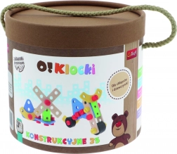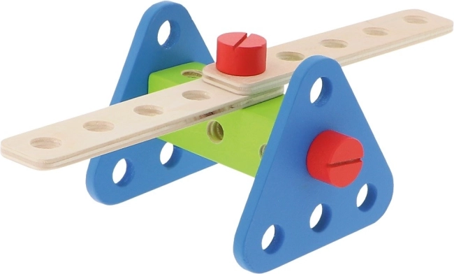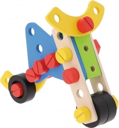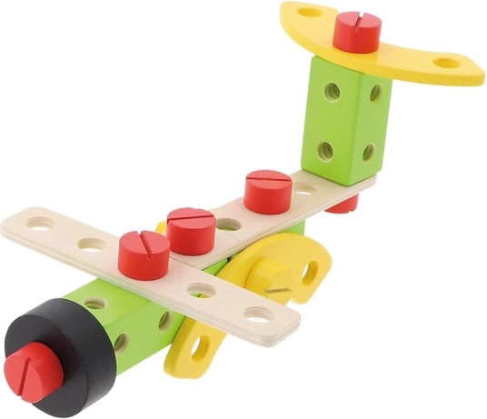 În set sunt 35 de elemente: cuburi, șuruburi, unelte și un ghid cu sugestii pentru asamblarea diferitelor construcții.