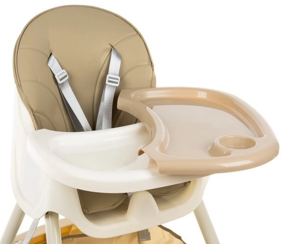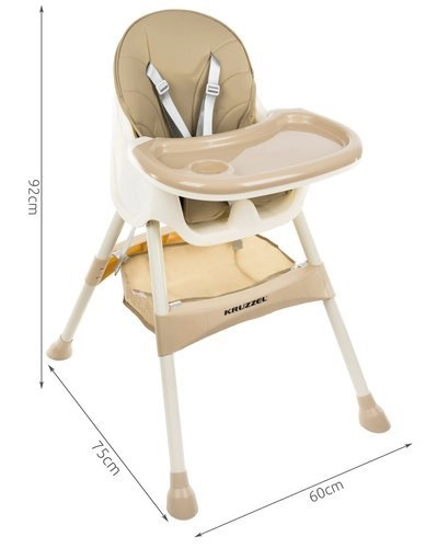 Scaunul Kruzzel 3 în 1 este ideal pentru mesele zilnice ale copilului tău. Este ușor, moale și simplu de utilizat. Scaunul este potrivit pentru copii începând de la vârsta de 6 luni și are o husă detașabilă din piele ecologică, ușor de curățat. Blatul poate fi reglat în 3 poziții, iar tavă este detașabilă. Picioarele anti-alunecare și elementul profilat între picioare asigură stabilitatea și siguranța scaunului.