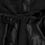 Această pelerină lungă neagră cu glugă este accesoriul ideal pentru costume de vrăjitor, vrăjitoare, vampir sau personaje misterioase. Datorită legării simple cu șnururi, o poți îmbrăca ușor peste hainele obișnuite, iar croiala lejeră nu restricționează mișcarea – perfectă pentru dans și ședințe foto.