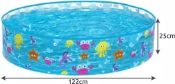 Specificațiile piscinei includ o capacitate de 277 litri și dimensiuni de 122 cm x 25 cm, care sunt ideale pentru copiii mici. Produsul cântărește doar 950 g, fiind ușor de manevrat și transportat. Setul include și un plasture de reparație impermeabil, permițând reparații rapide chiar și când piscina este plină cu apă.