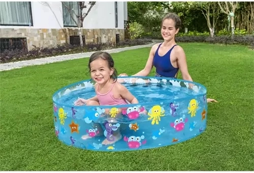 Piscina gonflabilă trebuie doar umplută cu apă, nu necesită pompă sau alte modificări complicate.