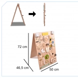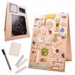 Funcția unică a acestei plăci este față-verso - o parte conține diverse elemente de manipulare, iar cealaltă servește ca suprafață pentru desen și scris cu cretă, markere sau creion. Aceasta ajută copiii să-și dezvolte creativitatea și motricitatea fină.