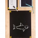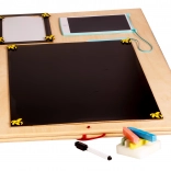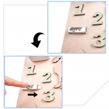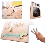Datorită designului unic față-verso, copiii pot folosi atât partea de manipulare cât și partea pentru scris și desenat.