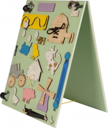 Datorită diverselor părți și suprafețe mobile, această tablă stimulează motricitatea fină și oferă stimulente senzoriale pentru dezvoltare.
