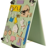 O parte a tablei este echipată cu elemente de cunoaștere și atingere, în timp ce cealaltă servește ca suprafață de desen cu cretă.