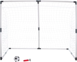 Poartă de fotbal pentru copii 2în1 este o variantă excelentă pentru a implica copiii dumneavoastră în activități sportive direct în grădina voastră. Poarta poate fi ușor asamblată în două mai mici sau una mai mare, astfel încât să se adapteze oricărui spațiu. Pachetul include și o minge și o pompă, astfel încât să puteți începe să jucați imediat.