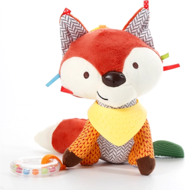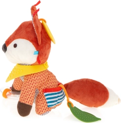 Jucăria în formă de vulpe prietenoasă încântă cu realizarea sa frumoasă. Fabricată din diferite materiale, oferă texturi și caracteristici variate. Susține percepția senzorială la copiii mici și explorarea lumii înconjurătoare.