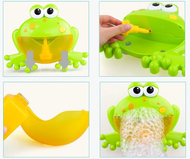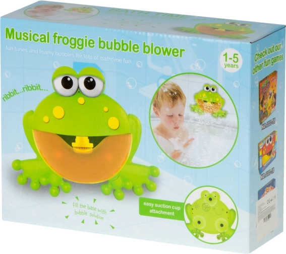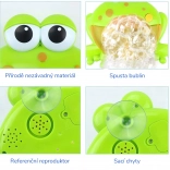 În timp ce creează bule, broscuța redă melodii jucăușe care transformă baia într-un mic spectacol.