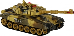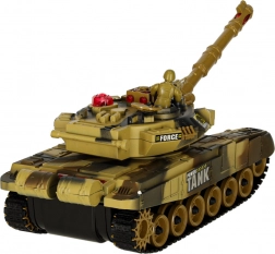 Tancul RC în variantă deșert oferă mers lin înainte/înapoi, rotire pe loc și turelă rotativă cu 180° pe fiecare parte (în total sector de tragere 360°). Șenilele din cauciuc moale asigură aderență bună pe diverse suprafețe. La tragere, tancul simulează recul realist și sunete de motor și foc.