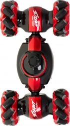 Mașină RC distractivă și rezistentă, cu dublu control, pentru condus dinamic și trucuri. Datorită roților multidirecționale, rotirilor la 360° și celor două moduri de condus (race/off-road), face față sprinturilor rapide și terenului dificil. Pachetul include două controlere: joystick clasic și control prin gesturi Gravity Sensor cu frecvență 2,4 GHz.