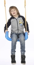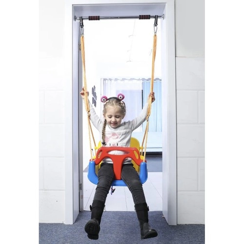 Montajul este rapid și simplu – leagănul poate fi prins pe balcon, în tocul ușii (de ex. pe o bară extensibilă) sau pe o structură de grădină. Frânghiile din nylon reglabile permit ajustarea precisă a înălțimii. Componentele din plastic rezistent PP și elementele metalice asigură durabilitate de lungă durată pentru utilizare casnică, atât la interior, cât și la exterior.