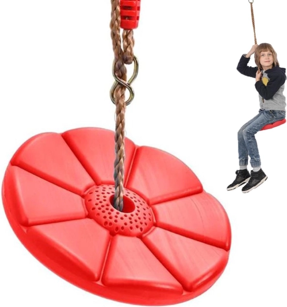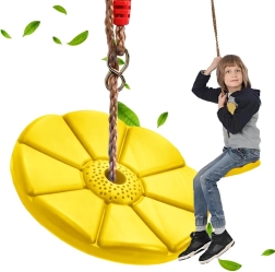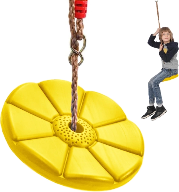 Acest leagăn cu șezut neted în formă de floare este ideal pentru grădină, terasă sau interior. Datorită frânghiilor reglabile îl puteți agăța ușor de un copac sau de o structură de joacă, oferindu-le copiilor mișcare activă și bucurie în aer liber.