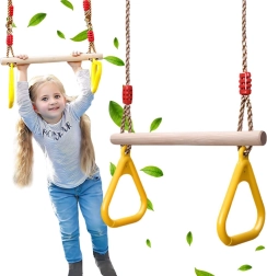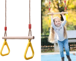 Bară gimnastică din lemn cu mânere este o alegere excelentă pentru copiii activi. Oferă distracție și dezvoltarea motricității, întărește mușchii brațelor și coordonarea și datorită corzilor reglabile se adaptează ușor la diferite înălțimi. Potrivită pentru grădină, terasă și interior, ocupă minimum de spațiu și are capacitate de încărcare până la 100 kg.