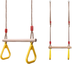 Această bară gimnastică din lemn pentru copii, cu mânere ergonomice din plastic, oferă exerciții sigure și atractive în aer liber și acasă. Bara rezistentă din lemn natural și corzile solide, reglabile în lungime, asigură stabilitate la legănare și tracțiuni. Datorită dimensiunilor compacte, este ideală acolo unde doriți să sprijiniți mișcarea, forța și echilibrul copiilor.