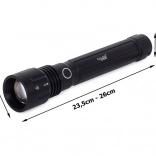 Datorită funcției de zoom, distanța focală a luminii poate fi ajustată lin, cu o rază de acțiune de până la 1000 de metri. Pentru alimentare, sunt folosite baterii litiu-ion 26650 de înaltă calitate, care prelungesc durata de funcționare. Lanterna oferă mai multe moduri de iluminare: 100%, 75%, 50%, stroboscop și SOS.