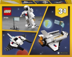 Acest set LEGO Creator 3în1 include trei modele diferite. Poți construi o navetă spațială, o poți reconstrui într-o figurină astronaut cu rucsac cu reacție și steag de înfipt pe o planetă, sau poți crea un model impresionant de navă spațială.