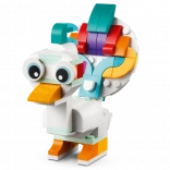 Datorită conceptului 3 în 1, micii constructori pot reconstrui cu ușurință modelul: într-un căluț de mare elegant cu un suport ce amintește de fundul mării, sau într-un păun cu coadă colorată și ochi mobili. Setul oferă astfel povești creative nesfârșite și inspiră la construcția liberă a altor creaturi drăgălașe.