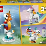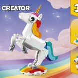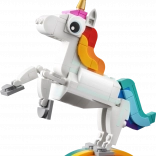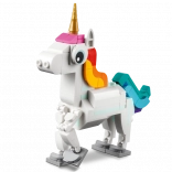 Cu acest set fermecat, copiii pot construi un unicorn grațios cu corn auriu, coadă în culorile curcubeului și picioare și copite mobile. Modelul poate fi expus pe un soclu curcubeu și poziționat în postura tradițională pe cele două picioare din spate sau lăsat să stea pe toate cele patru.