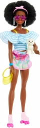 Setul include accesorii atrăgătoare – bentiță cu fundiță, șapcă galbenă cu cozoroc, ceas, ochelari de soare și geantă stilată. Partenerul de nădejde, cățelușul adorabil, însoțește păpușa în fiecare aventură – de la o înghețată pe promenadă până la o după-amiază pe role în parc.