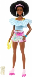 Această păpușă fashion aduce un stil estival proaspăt și o mulțime de moduri de a dezvolta imaginația. Bluza cu volane și dungi, șorturile sport pastel și patinele roz îi accentuează lookul expresiv. Nu lipsește coafura afro creț, care adaugă caracter și originalitate.