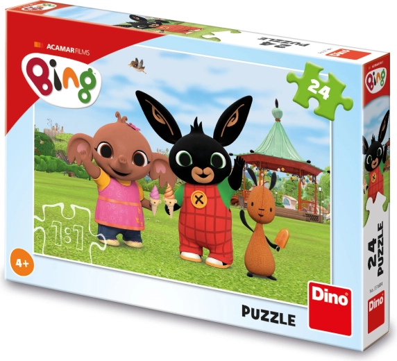 Puzzle distractiv pentru copii cu personajul BING, conține 24 de piese mari, ideale pentru mânuțe mici. În scena colorată, Bing, Sula și Flop se bucură de înghețată pe iarbă. Asamblarea susține motricitatea fină, gândirea logică și imaginația copiilor de la 4 ani. Fabricat în Cehia din carton de calitate, sigur pentru sănătate.