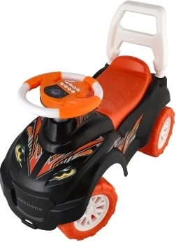 Cele patru roți late oferă o stabilitate excelentă, făcând mașinuța sigură pentru utilizare atât în interior, cât și afară.