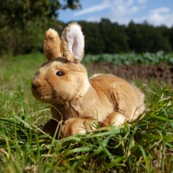 Acest iepuraș de pluș maro, în variantă șezând/culcat, încântă prin blănița fină, detaliile atent lucrate și umplutura plăcut de pufoasă. Brandul RAPPA mizează pe materiale de calitate și prelucrare manuală, datorită cărora iepurașul arată realist și rezistă îmbrățișărilor zilnice.