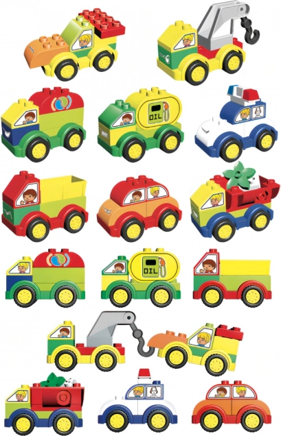 Copiii asamblează cu ușurință vehicule colorate din cărămizi de mari dimensiuni, care se potrivesc perfect în mâini mici și susțin construcția creativă și primele povești.