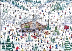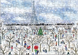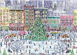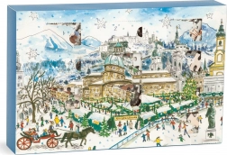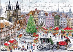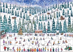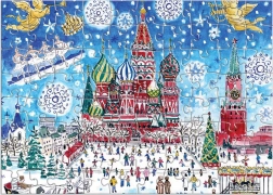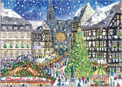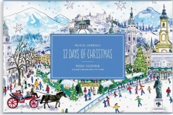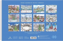 Acest calendar de Advent original îmbină decorul festiv cu distracția relaxantă pentru mici și mari. După glisarea învelișului exterior, apare placa interioară cu 12 ferestrașe, în spatele cărora se află puzzle-uri ilustrate. Fiecare motiv surprinde spiritul Crăciunului din întreaga lume, în stilul lui Michael Storrings.