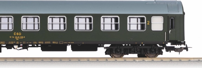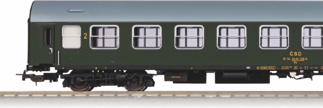 Acest vagon este perfect pentru asamblarea trenurilor de epocă, în special în combinație cu locomotivele seria Sergej sau Laminátka, pe care le găsiți și în oferta noastră.