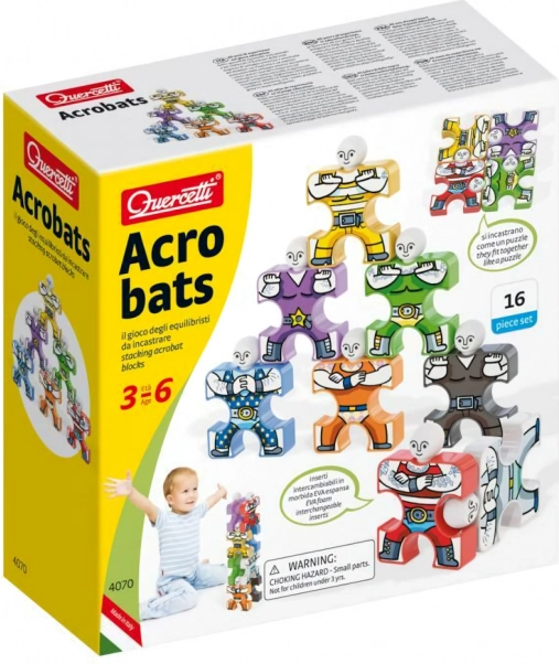 Construiți piramide colorate din figurinele Quercetti Acrobats și bucurați-vă de un joc de stivuire cu echilibru, care dezvoltă motricitatea fină, coordonarea și creativitatea copiilor de la 3 ani. În pachet sunt 16 figurine rezistente și inserții moi interschimbabile pentru combinații nesfârșite.