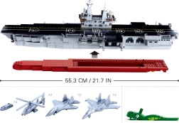 Construiește un model impresionant de portavion cu lungimea de 55 cm din plastic ABS de calitate. Setul oferă 1088 piese, nivel de dificultate ridicat și numeroase posibilități de joc datorită avioanelor și elicopterelor incluse. Este compatibil cu LEGO, COBI și Mega Bloks, astfel încât îți poți extinde cu ușurință flota.