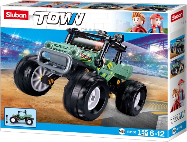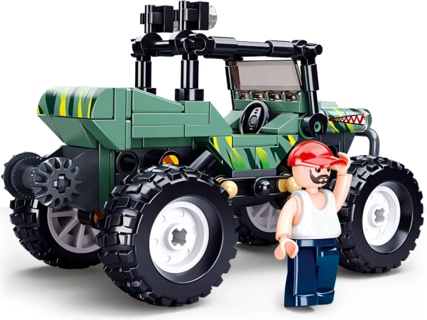 Construiește-ți propriul off‑road de acțiune cu acest set SLUBAN. Conține 155 piese, 1 figurină și oferă un nivel de dificultate ușor pentru copii de la 6 ani. Cărămizile sunt realizate din ABS durabil și sigur pentru sănătate, iar pachetul include instrucțiuni tipărite și autocolante. Setul este compatibil cu LEGO, Cobi și Mega Bloks pentru posibilități nelimitate de construcție.