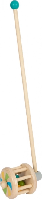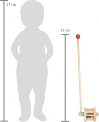 Acest căluț de lemn este un ajutor ideal pentru dezvoltarea abilităților motrice și a echilibrului la copiii mici. Are un design unic cu bile colorate care atrag atenția copilului și îl motivează să se miște. Mânerul cu bilă de lemn mărită îmbunătățește confortul la mers.