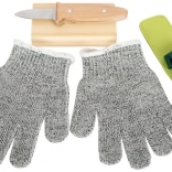 O pereche de mănuși mărimea XS protejează mâinile copiilor de tăieturi și îmbunătățește priza asupra instrumentului în timpul sculptării.