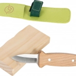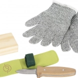 Acest set practic pentru micii cercetași și pasionații creativi include tot ce au nevoie copiii pentru a sculpta în siguranță: un cuțit de calitate cu lamă ascuțită pe o singură parte și vârf rotunjit, mănuși antităiere mărimea XS, un mic bloc de lemn pentru exersarea tăieturilor și o husă textilă rezistentă cu buclă pentru curea. Dimensiunile compacte și mânerul din lemn, potrivit pentru palma copilului, susțin obiceiuri corecte și o priză sigură.