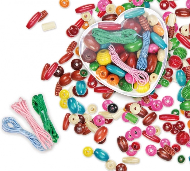 Oferă-i copilului tău posibilitatea de a-și dezvolta creativitatea și motricitatea fină cu ajutorul mărgelelor din lemn Lena. Setul conține mărgele viu colorate de diferite forme și dimensiuni de 9,5 mm, care sunt depozitate într-o cutie transparentă în formă de inimioară, împreună cu trei șnururi pentru înșirare.
