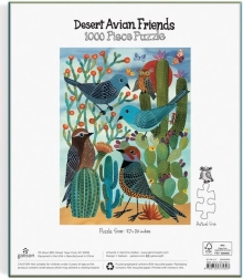 Descoperă frumusețea deșertului însorit într-un puzzle original cu motive de păsări realizate de artista Geninne Zlatkis. 1000 de piese tăiate cu precizie, finisaj mat pentru culori fideli, materiale ecologice cu certificare FSC și cutie rezistentă, reutilizabilă fac din acest puzzle un cadou grozav și o bucurie pentru întreaga familie.