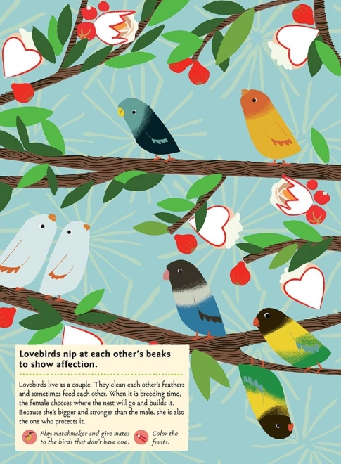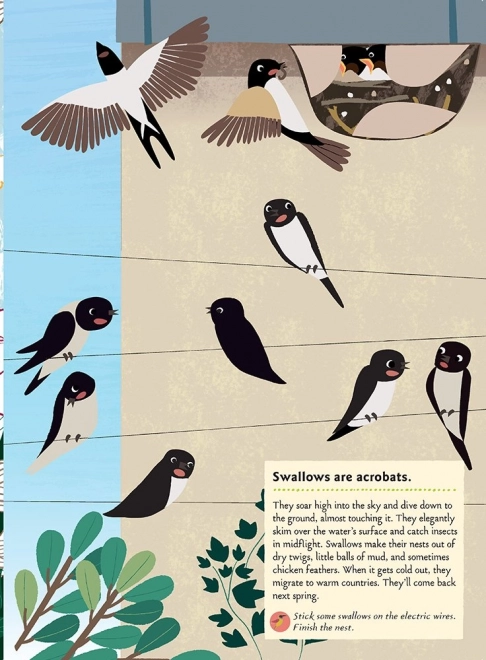 Include o selecție de specii cunoscute și exotice – de la privighetoare și rândunică până la papagal, tucan și flamingo – și aduce și informații amuzante (de exemplu despre cea mai mică pasăre din lume). Cartea este ideală pentru activități acasă, în călătorii și în timpul liber.