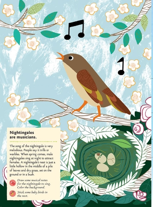 Descoperă lumea fascinantă a păsărilor cu o activitate creativă pentru copii de la 5 ani. Această carte frumos ilustrată de Olivia Cosneau oferă 104 autocolante, 25 de activități distractive și un chestionar scurt. Copiii vor cunoaște jucăuș diversitatea speciilor – de la privighetoare și rândunele până la colibri, pelicani sau pinguini. Cartea este în limba engleză și respectă standardele europene actuale de siguranță.