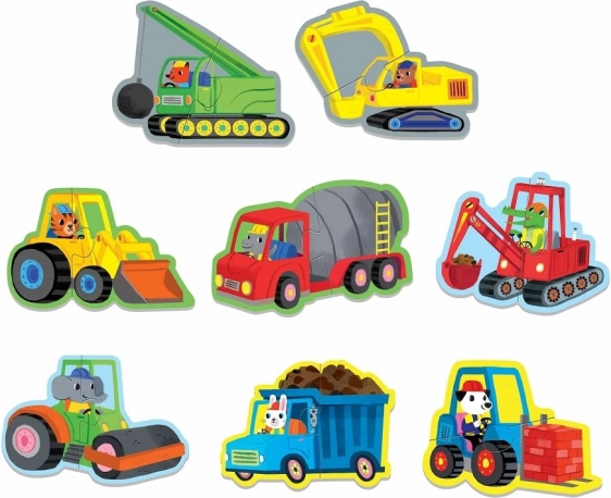 - 8 imagini cu utilaje de construcții – puzzle-uri simple din 2 piese