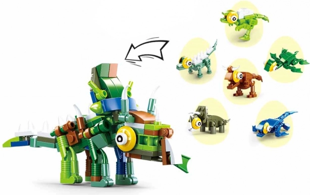 Descoperă ce dinozaur se ascunde în ou! Fiecare ou conține un mini set de construcție din plastic ABS de calitate, cu instrucțiuni de asamblare. Modelul este trimis aleatoriu. După ce colecționezi întreaga serie, poți asambla un model mare de Tyrannosaurus rex sau Triceratops. Setul este compatibil cu LEGO, COBI și Mega Bloks și este potrivit de la 4 ani.