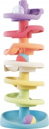 Pista cu bile QUERCETTI Spiral Tower Play ECO+ pentru cei mici dezvoltă motricitatea fină, coordonarea mână–ochi și înțelegerea relației cauză–efect. Șase niveluri în spirală, cu o bază mare și stabilă, asigură jocul în siguranță, în timp ce bilele – una și cu zornăitoare – se rostogolesc rapid pe traseele colorate. Fabricată din plastic 100% reciclat din gama PLAY ECO+ și în culori pastel plăcute la atingere. Potrivită de la 12 luni.