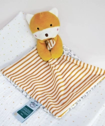 - Design liniștitor: căpușor de vulpiță și păturică/doudou care inspiră siguranță.