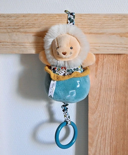 Leușorul este așezat într-o cutie cadou stilată, care încântă la orice ocazie – ca dar pentru naștere, botez sau prima vizită. Combinația dintre plușul moale și stimularea sonoră delicată susține dezvoltarea simțurilor și a imaginației.