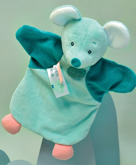 Drăgălașa marionetă în formă de șoricel combină o jucărie de pluș și o marionetă pentru povestit. Materialele fine și culorile la modă oferă un efect liniștitor pentru bebeluș și, în același timp, stimulează imaginația copiilor mai mari. Ideală acasă și în călătorii, potrivită de la naștere, realizată în calitate premium și conform standardelor europene CE.