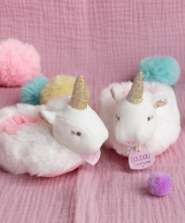 Setul cadou Doudou include botoșei de pluș cu motiv unicorn, într-un ambalaj cadou superb. Acești botoșei sunt realizați dintr-o combinație de elemente albe, roz și aurii, care oferă copilului un aspect elegant. Caracteristici principale: