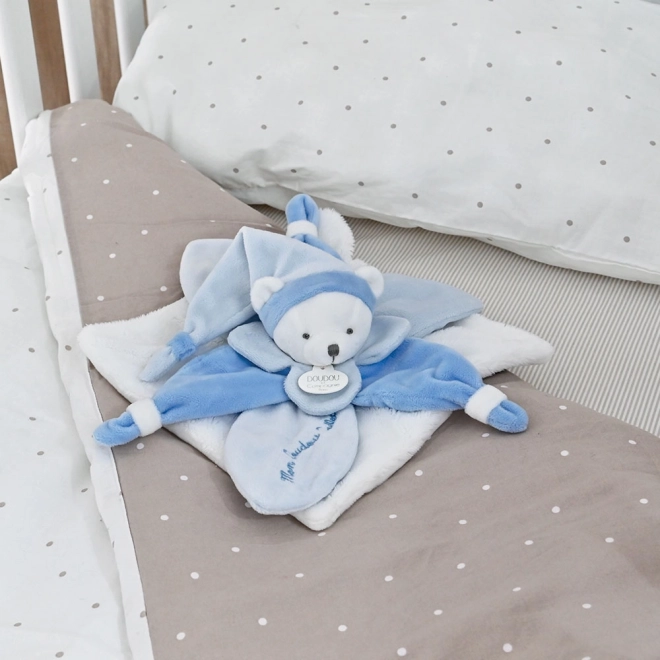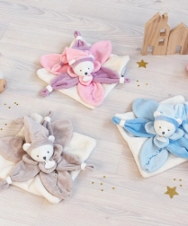 Păturica Doudou este concepută pentru a însoți bebelușul din primele zile. Este realizată din materiale foarte fine, blânde cu pielea delicată a copiilor, oferind senzația de căldură și alinare. Armonia cromatică subtilă are un efect estetic și liniștitor.
