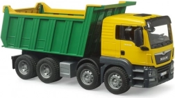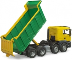 Basculanta MAN TGS de la Bruder este modelul perfect pentru micii constructori. Acest camion robust cu cabină detaliată permite deschiderea ușilor, oferind copiilor posibilitatea de a introduce figurine și de a crea scenarii proprii de șantier. Basculanta din spate se deschide automat la descărcarea încărcăturii, aducând și mai multă distracție.